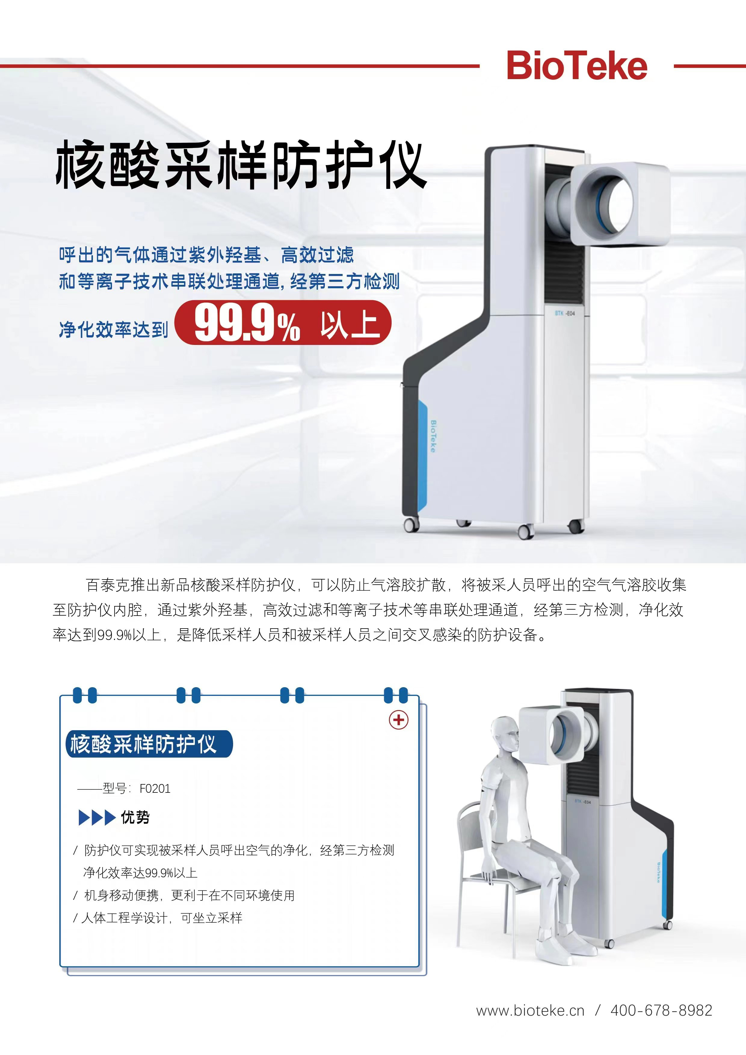 對此,百泰克生物快速成立專題研發(fā)小組,從保護被采樣者的角度出發(fā),開發(fā)可實現(xiàn)氣溶膠消毒功能的采樣儀,并迅速研制出樣品,最終成功推出國內(nèi)首款采樣防護儀,廣泛適用于目前市場上投用的核酸采樣小屋以及不具備采樣小屋安裝條件的場所。