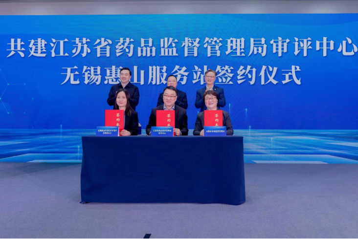 服務(wù)站揭牌的同時(shí),省藥監(jiān)局審評(píng)中心、市市場局與惠山經(jīng)開區(qū)管委會(huì)三方戰(zhàn)略合作進(jìn)行了簽約,通過建立常態(tài)化交流機(jī)制、明確各方工作職責(zé)、成立領(lǐng)導(dǎo)小組等具體舉措建立戰(zhàn)略合作,為服務(wù)站的全面履職提供保障;此外,戰(zhàn)略合作將作為三方黨建組織“1+1+1”結(jié)對共建活動(dòng)的補(bǔ)充,結(jié)合“服務(wù)高質(zhì)量發(fā)展先鋒行動(dòng)隊(duì)”、“青年文明號(hào)”的創(chuàng)建活動(dòng)打造服務(wù)品牌,為惠山區(qū)生物醫(yī)藥產(chǎn)業(yè)領(lǐng)取發(fā)展提供專業(yè)支持。