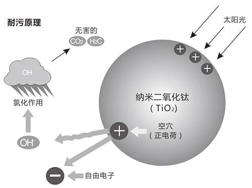 由機硅改性無機高分子合成樹脂和特種添加劑組成的水性罩面涂料,該產(chǎn)品有很強的光觸媒效應(yīng),涂膜吸收陽光的紫外線后,使表面達(dá)到超親水性,可分解涂膜面污物,具有自潔功能